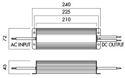 Constant voltage power supplies, for protected outdoor use, with metal resin case. Connections via double output cables.
