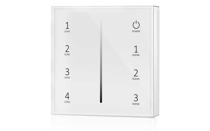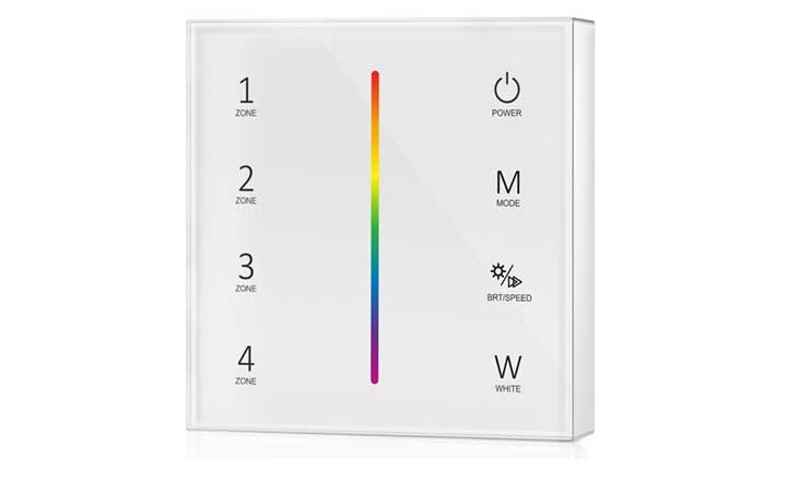 - Pannelli “Touch”a 4 zone, da 1 a 4 colori, utilizzabili sia come master DMX512 che come comandi remoti a radiofrequenza 2.4GHz