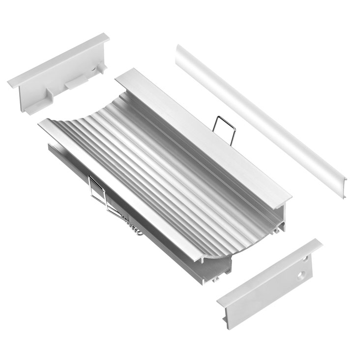 Profilo in alluminio estruso anodizzato ad incasso, ideale per l’installazione e raffreddamento delle strip a LED.