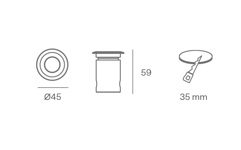 | JS45G242C00 | ORSEOLO 45 INCASSO 2W 120° 24Vdc 3000K GHIERA INOX 316L GRIGIO | |