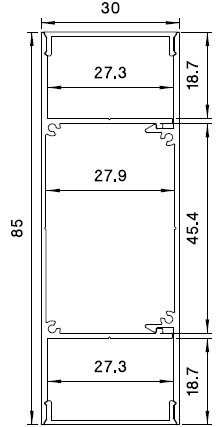 | PRF016/100G | Profilo in alluminio a parete a doppio fascio di luce (barra da 1m) |